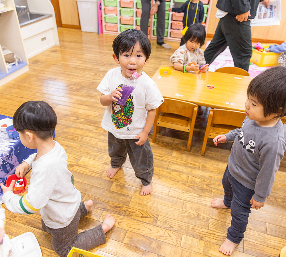 遊びや生活の中で、自分で考え、選び、行動する経験を重ねることで、達成感や自信を育んでいきます。
